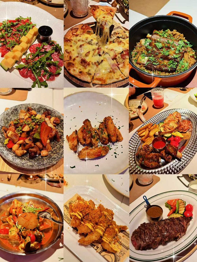 精心布置的长桌上,万圣节元素与美食相映成趣,南瓜造型的桌花中央还点缀着几颗闪闪发亮的装饰糖果。菜品的呈现更是别具匠心:主餐被巧妙地点缀成特色造型,这些色香味俱全的佳肴不仅让人大饱口福,更成为大家争相拍照的焦点。