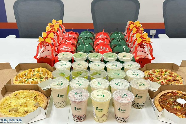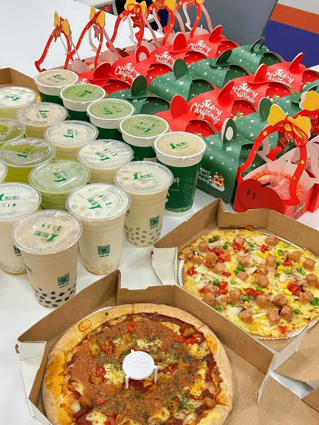 下午茶时间如约而至,桌上摆放着大家喜爱的“一点点”奶茶与香气四溢的披萨。甜而不腻的奶茶、热腾腾的披萨,为这个冬日带来了实实在在的暖意。供应链拍档们围坐在一起,一边品尝美食,一边轻声交谈,分享工作中的点滴与生活里的趣事,笑声在不经意间流淌开来,让平日里紧张有序的办公环境多了几分轻松与亲切。
