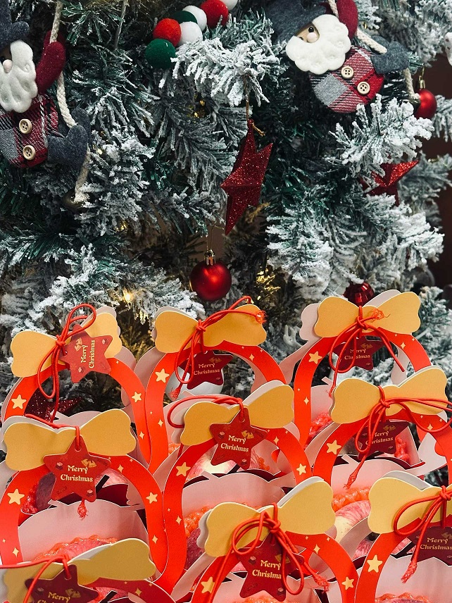 除了美食,公司还为每一位员工准备了一份特别的圣诞心意——象征平安与祝福的圣诞果。每一个果子都被细心地装入精致的小礼盒中,传递着公司对员工的关怀与感谢。简单而真诚的礼物,不仅承载着节日的祝福,也让大家在细节中感受到被重视、被珍惜的温暖。