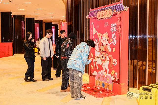 活动在喜庆热烈的氛围中开启。“新春集市”作为开场游园环节,为全体员工精心设置了六个破冰互动游戏,大家穿梭于“挑战2026”、“写福宇”、“投责纳福”、“猜灯谜”等多个互动展位之间。现场欢声笑语不断,既拉近了团队距离,也为整场年会注入了浓厚的节日气息与轻松愉悦的开端。