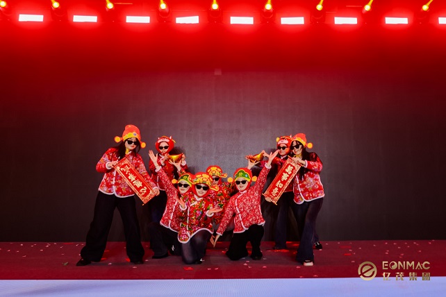随后,年会节目正式展开。专业灯光秀以科技与艺术融合的方式点亮舞台,拉开晚会序幕。各部门及团队精心准备的节目陆续登场,节目形式多样,有舞蹈、小品、唱跳等多种类型。员工们在舞台上展现了积极向上的精神风貌与丰富多彩的才艺,多样化的节目编排让现场始终洋溢着轻松、欢乐而富有活力的氛围,也充分体现了东英团队的凝聚力与创造力。